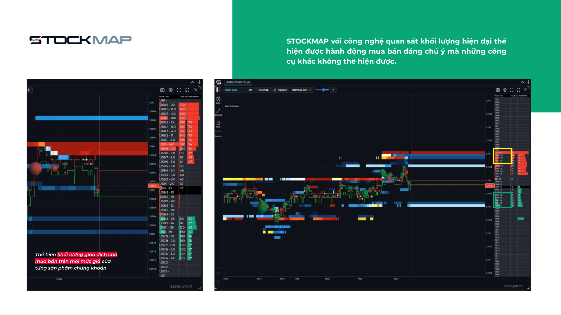 STOCKMAP với công nghệ quan sát khối lượng hiện đại thể hiện được hành động mua bán đáng chú ý mà những công cụ ngoài đường không thể hiện được.